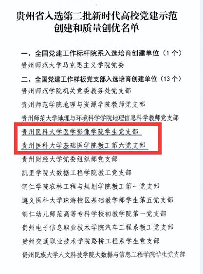 根据《教育部办公厅关于公布第二批全国党建工作示范高校、标杆院系、样板支部培育创建单位名单的通知》,永利官网基础医学院教工第六党支部和医学影像学院学生党支部入选第二批全国党建工作样板支部培育创建单位。