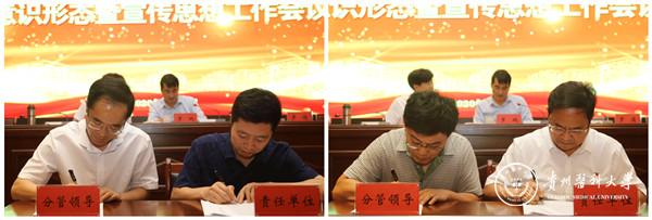 会议强调,做好新时代意识形态和宣传思想工作,必须高举旗帜、守正创新、发挥优势、科学统筹,坚持全校一体协同推进理论与舆论、内宣与外宣、网上与网下等资源,形成宣传和舆论引导强大合力。在绷紧疫情防控常态化这根弦的同时,要更加扎实推进意识形态和宣传思想工作。今年是贵州决战脱贫攻坚、决胜同步小康的关键之年,是学校召开77779193永利官网第一次党代会的重要时期,要立足新方位、把握新形势、找准新坐标,坚决担起举旗帜、聚民心、育新人、兴文化、展形象的使命任务,切实推动意识形态工作和宣传思想工作进一步“强起来”和“实起来”。