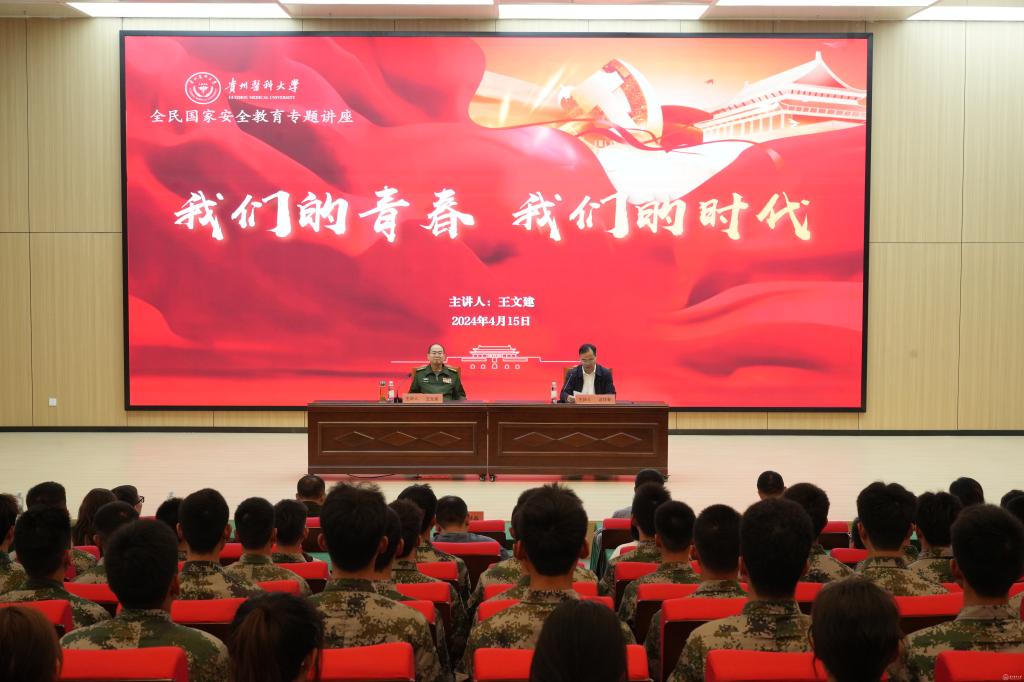 贵阳警备区党委书记、政治委员王文建大校莅临永利官网以“我们的青春 我们的时代”为题给广大师生作全民国家安全教育专题讲座。