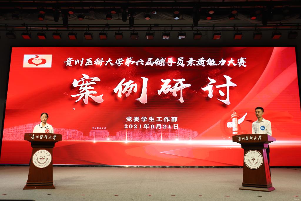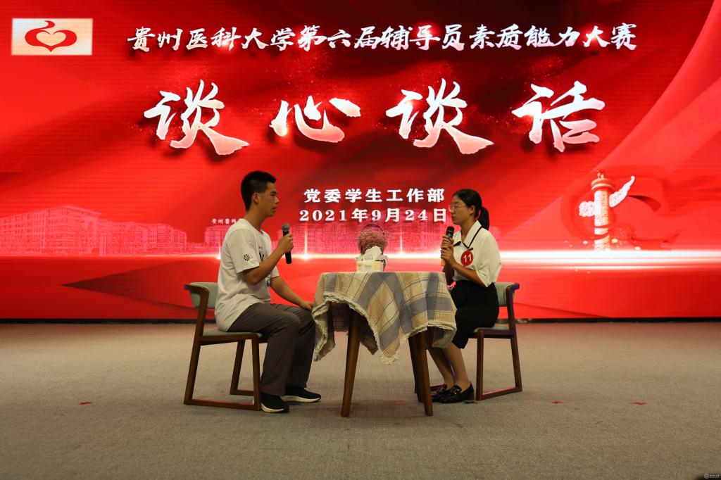 贵州师范学院党委学生工作部部长刘红玲、贵州财经大学党委学生工作部部长刘希磊、贵州师范大学求是学院党委副书记帅永平、永利官网后勤管理处处长赵平和党委学生工作部部长王韬担任大赛评委,各学院分管学生工作副书记、全体辅导员及学生代表参加。