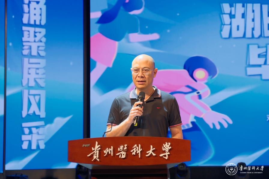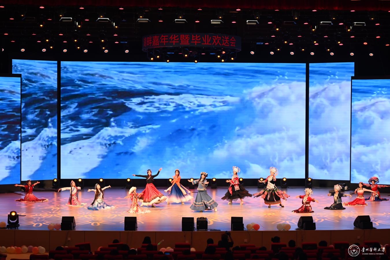 舞台之上,青春绽放。整场晚会汇聚了多元艺术形式,高潮迭起,精彩纷呈:中外学子联袂的《创意走秀》展现力与美;《龙腾狮跃》引爆传统激情;动感街舞、魔力配音、热情民族舞、燃炸说唱轮番登场;《我们的时光》浅唱离愁,《不熄》致敬“她力量”,活力二次元舞动次元壁;东西方韵律在《China X》奇妙共鸣;华服之美于《花神颂》中优雅绽放;深情朗诵《红丝带》传递责任;群舞《美丽中国》绘就盛世画卷。每一个节目都凝聚着学生社团的智慧与热情,为毕业生献上了一场视听盛宴,生动诠释了贵医校园文化的蓬勃生机。