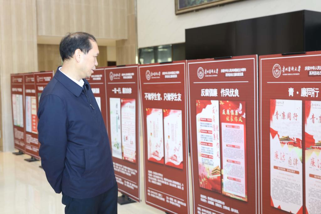 10月29日至11月6日,由校纪委、校团委主办的“廉洁教育永远在路上”——庆祝中华人民共和国成立70周年系列活动之廉洁建设展在永利官网南校区知雨楼一楼大厅展出。校党委书记林昌虎、纪委书记王之瑞、党委副书记战勇观看图片展。