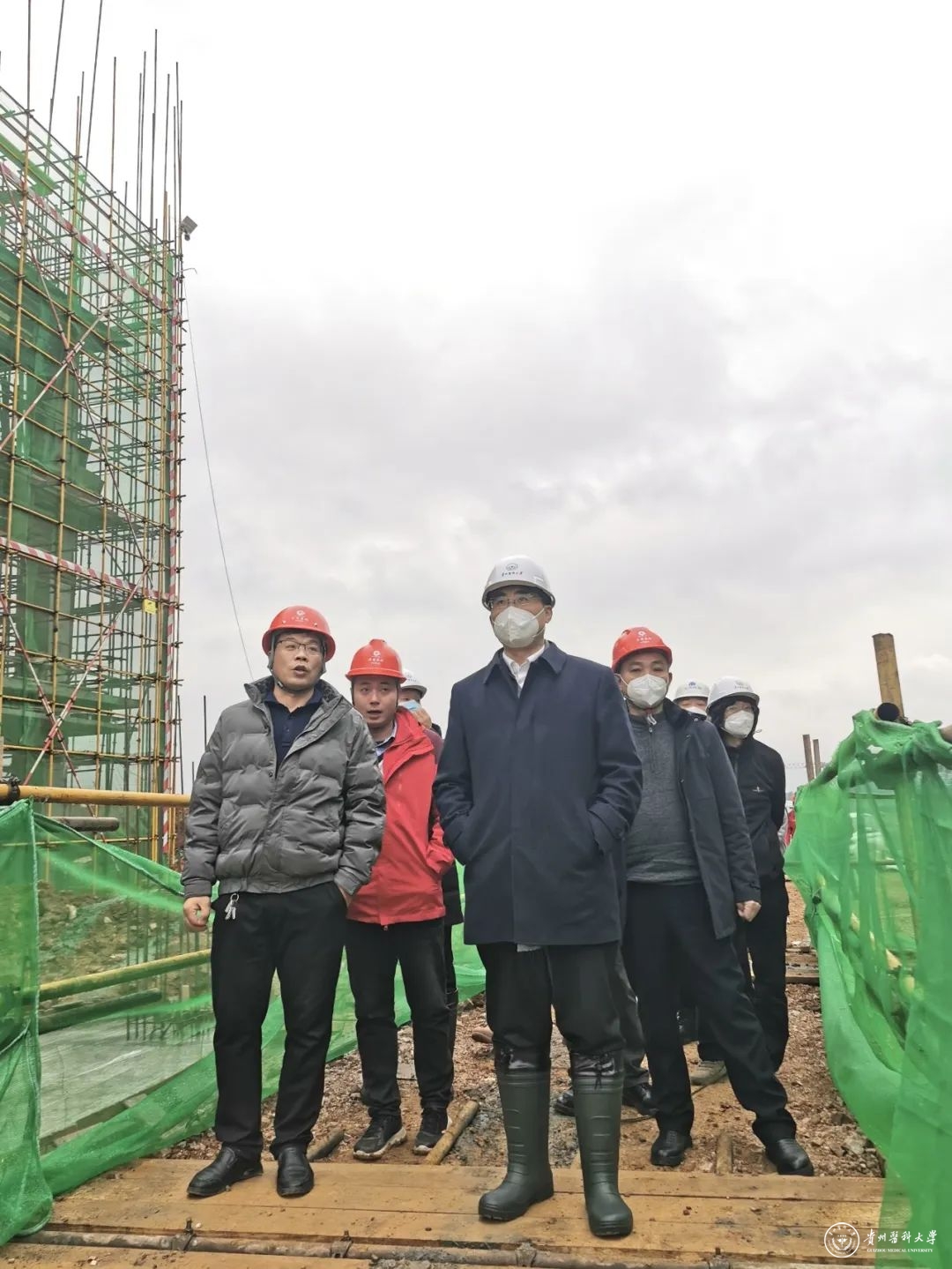 罗鹏一行深入工地,逐一调研各标段单体施工进度和施工质量,充分与设计、施工、监理等工作人员沟通交流,详细了解项目建设总体规划落实情况及总图、单体、道路等建设进度。罗鹏进入公卫组团学生宿舍,现场检查工程质量,查看磷石膏喷筑墙施工效果。罗鹏要求代建单位、参建单位要加强安全生产管理,切实履行安全生产主体责任,做好安全隐患排查,尤其是做好雨雪天气防滑防冻安全保障措施,牢牢守住安全生产底线红线;要始终坚持质量为先,精益建造,提高项目管理水平,高效推进项目建设,以工匠精神打造经得起考验的精品工程;要在确保施工安全和建设质量的前提下,统筹做好节日生活安排、疫情防控和施工生产各项工作。