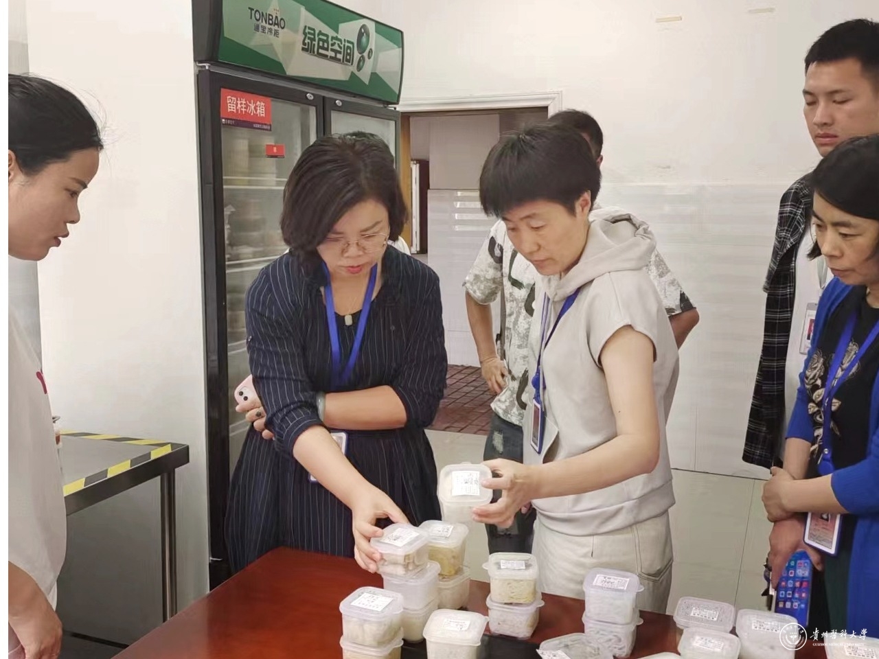 检查组重点查看了食堂用水、用电、用气及卫生情况,消防设施设备是否完善,食品原料采购、加工程序、食品清洗、餐具清洗消毒、食品留样、从业人员健康管理等是否达到食品安全管理要求等。并对存在的问题提出了整改要求,一是在端午节期间完成一食堂一楼漏水维修,消除漏水给师生就餐的影响;二是对一食堂一楼原教工餐区域闲置桌椅进行整理、拆除楼顶网格损坏部分,清理卫生死角、营造良好的用餐环境。