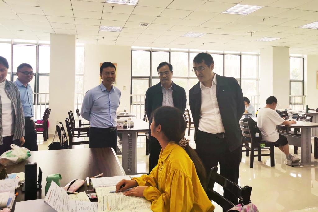 罗鹏一行走进学生宿舍、图书馆和食堂,了解学生学习生活及思想状况,并对相关工作提出要求。