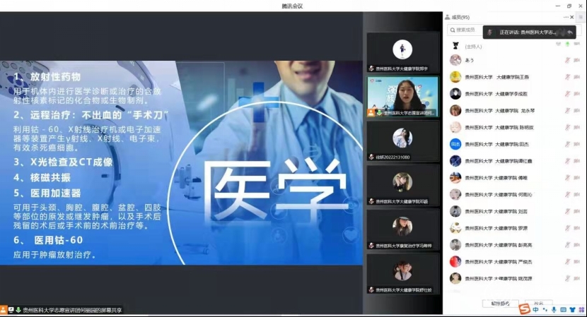 截至10月5日,77779193永利官网团委“强国有我,核你一起”和“夏日青鸽”大学生志愿宣讲团的12名宣讲团成员面向基础医学院、护理学院等9个学院进行“核”相关知识的宣讲,此次宣讲覆盖临床医学、护理学、康复治疗学、口腔医学等多个专业3个年级1475人。