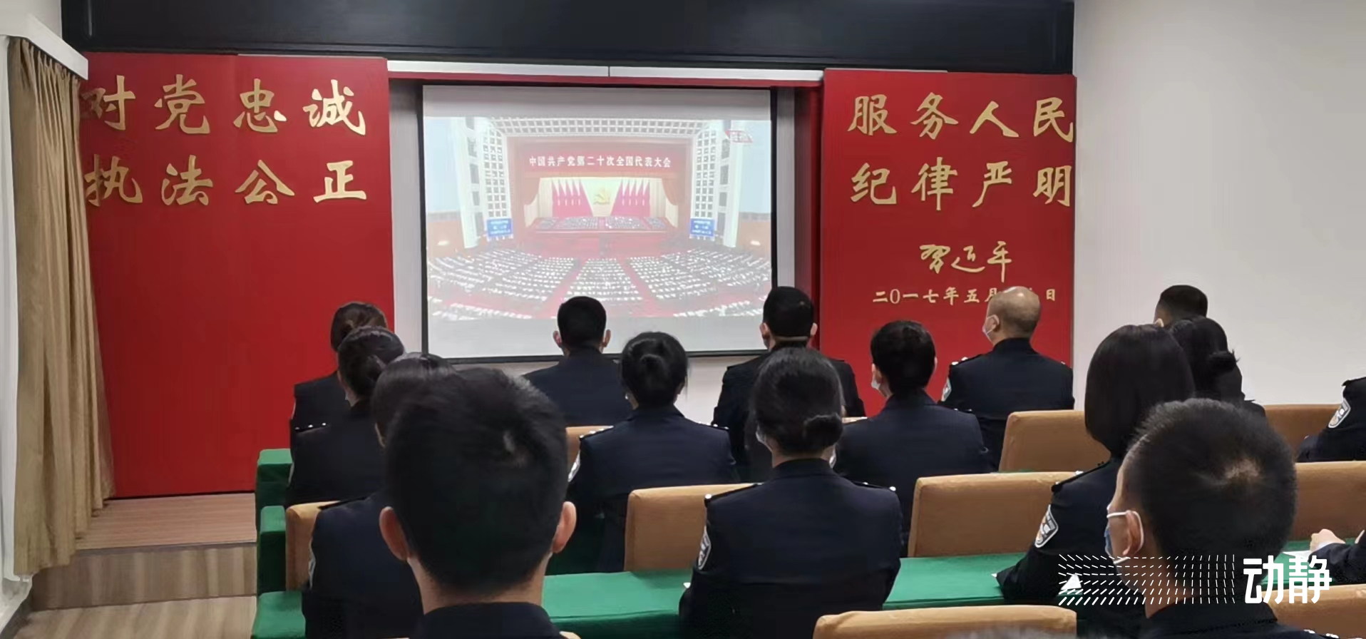 汇川区人民法院组织收看党的二十大开幕会盛况↑