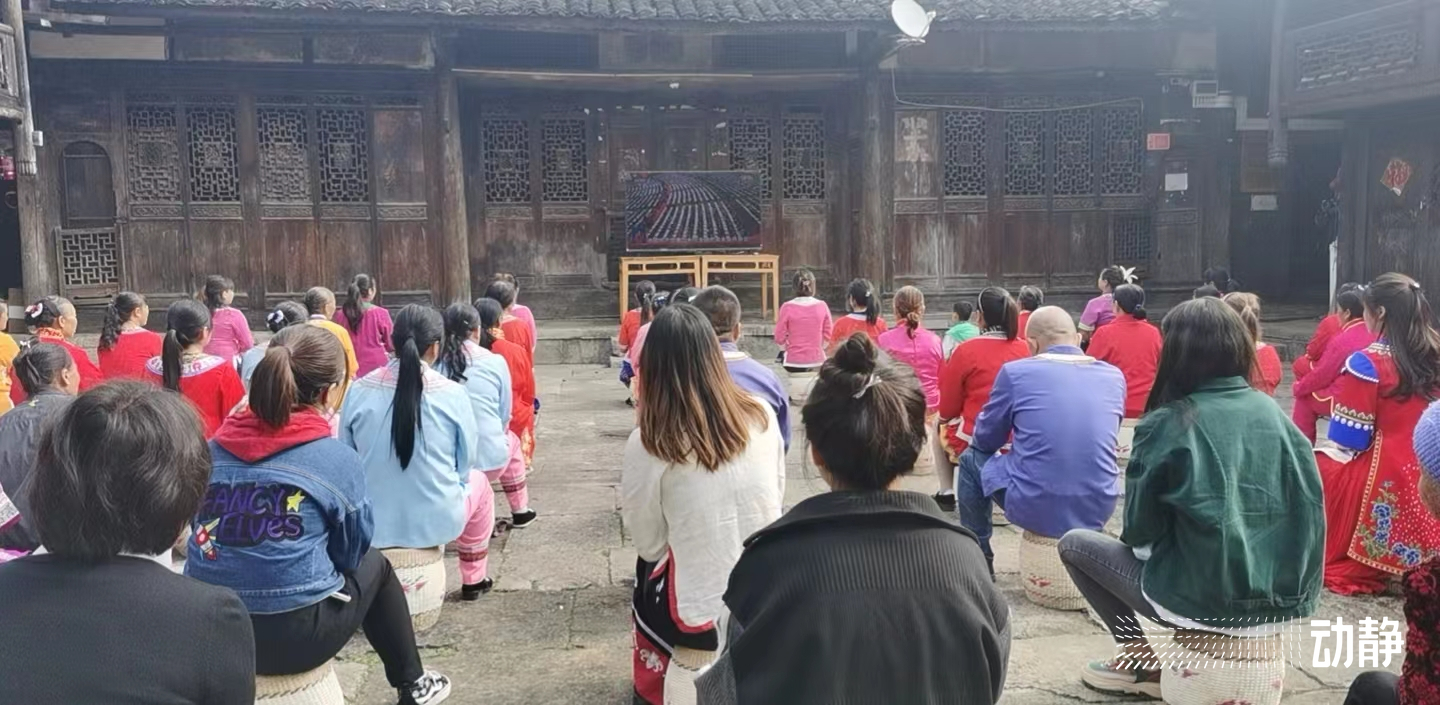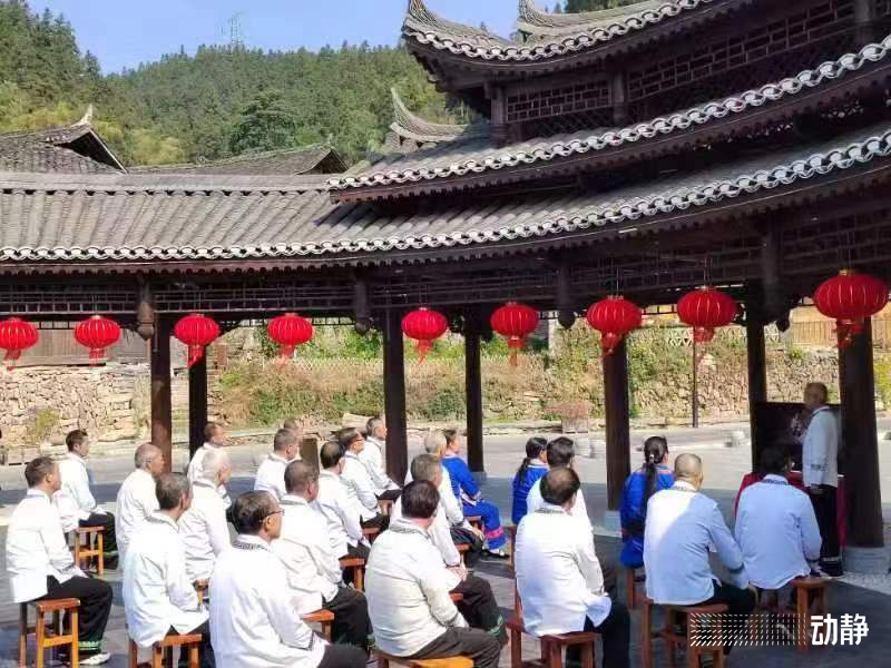 天柱县坌处镇三门塘村组织老党员用侗族语言同声传译党的二十大开幕会盛况↑
