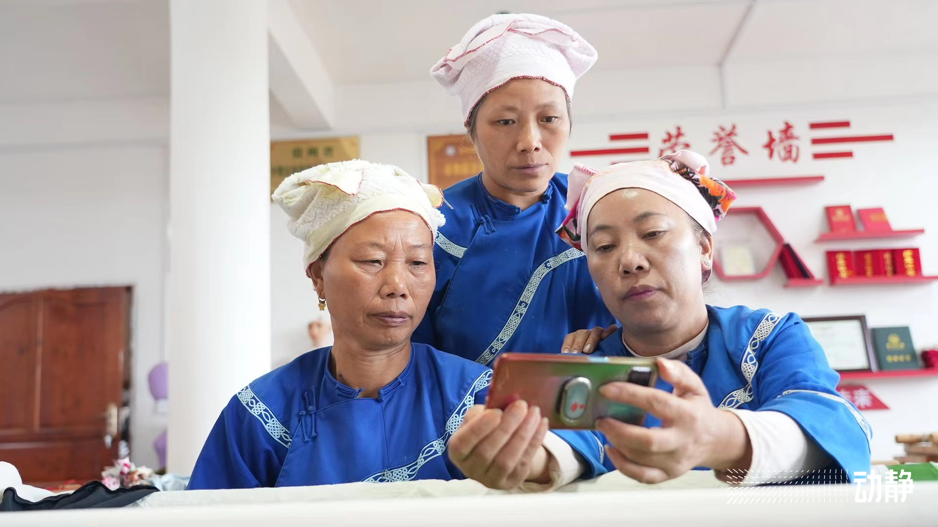 镇远县报京乡一家刺绣加工坊绣娘收看党的二十大开幕会盛况↑