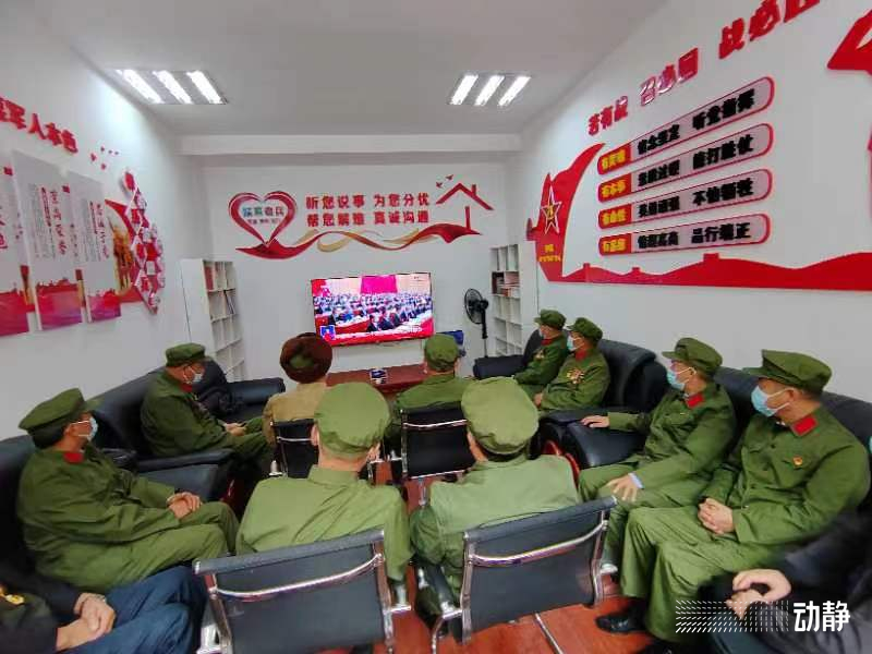 剑河县退役军人局组织退伍老兵集中收看党的二十大开幕会盛况↑