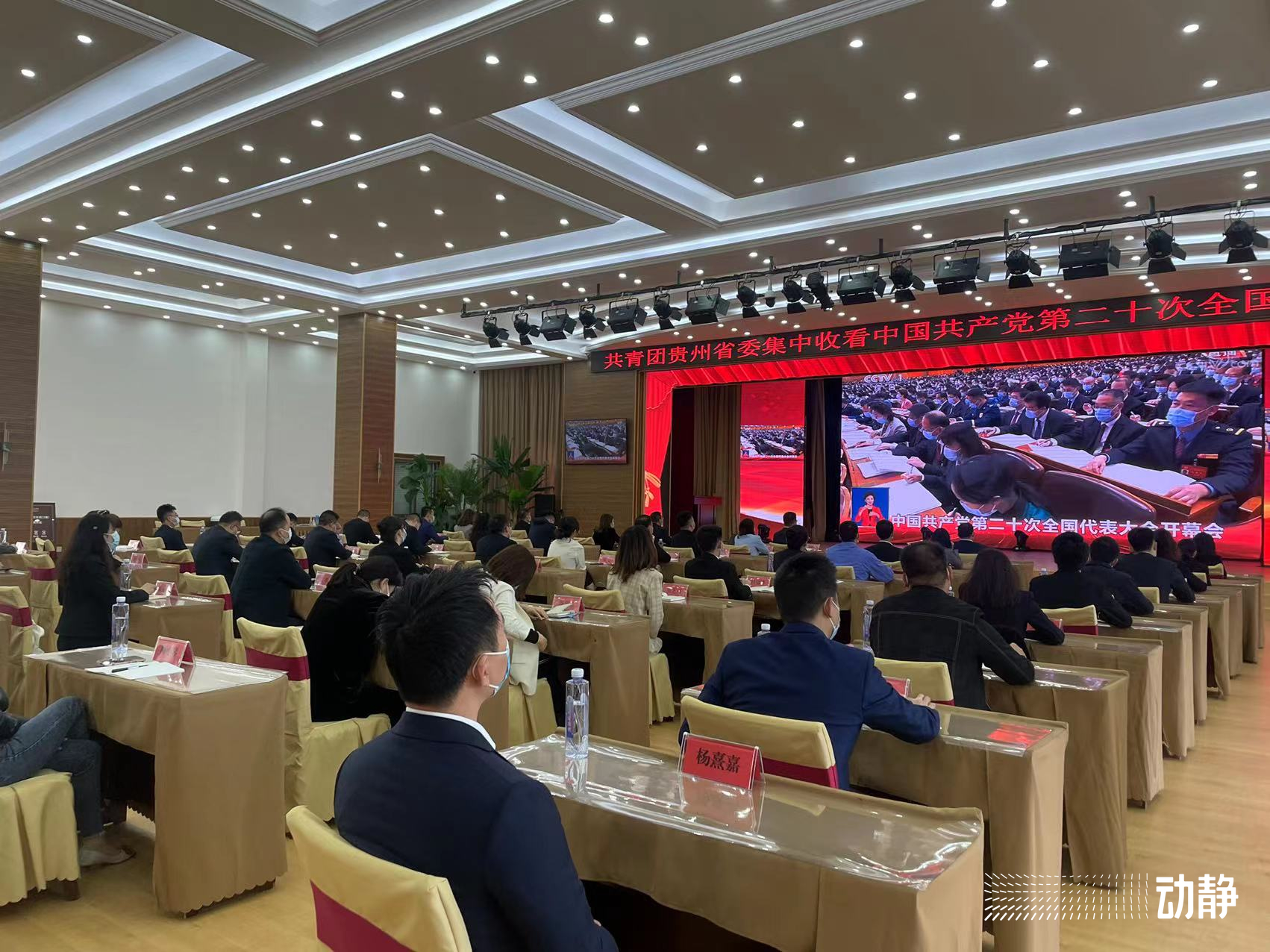 共青团贵州省委组织机关干部职工代表、青年学生代表、少先队辅导员代表等在省团校集中收看党的二十大开幕会盛况↑