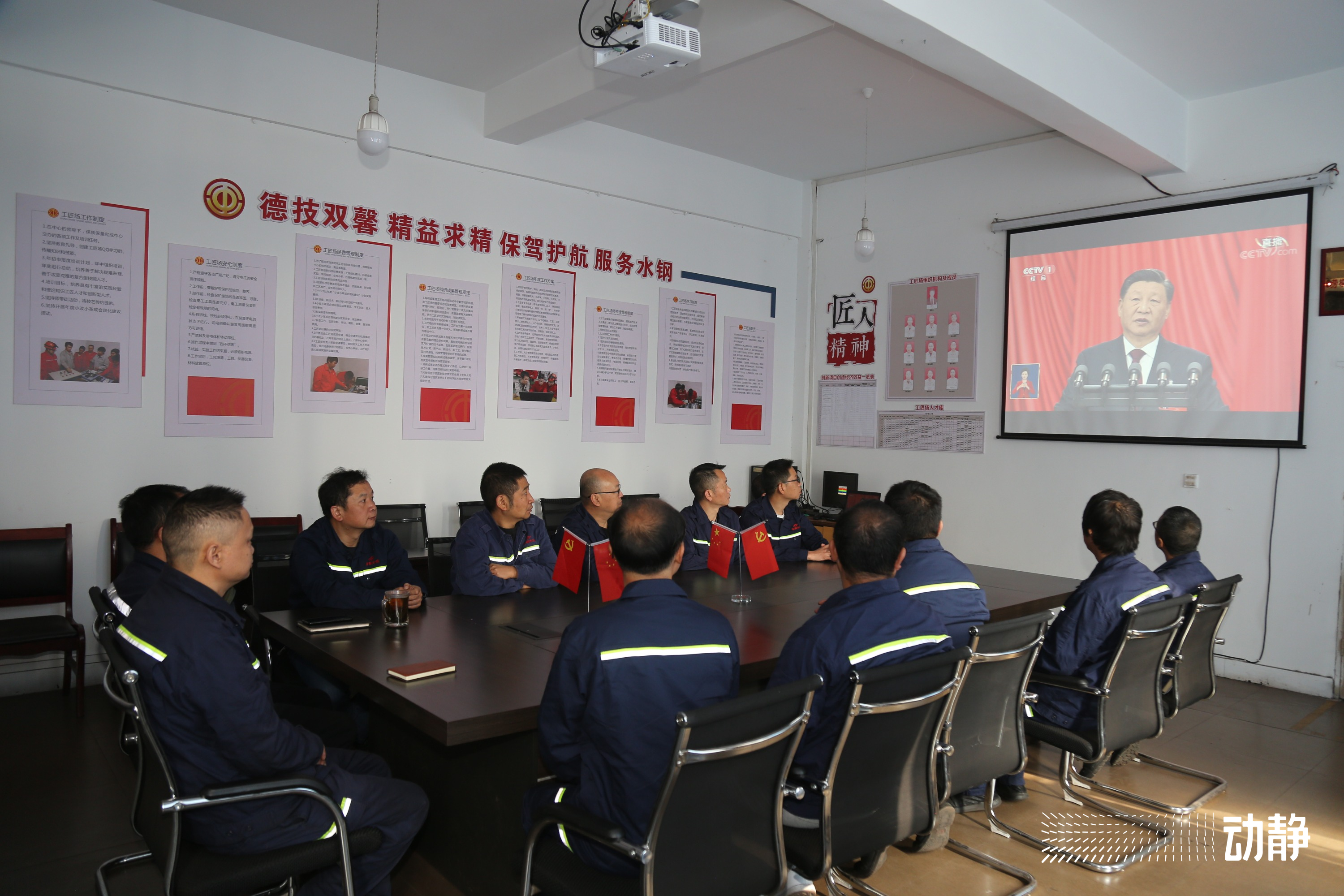 首钢水钢维检中心铁电工匠场组织收看党的二十大开幕会盛况↑