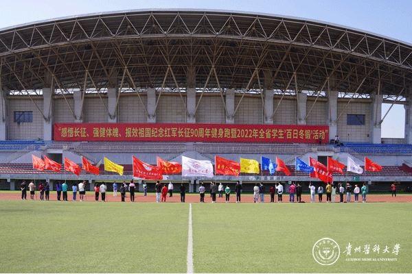 10月25日,永利官网“感悟长征 强健体魄 报效祖国”纪念红军长征90周年健身跑暨2022年全省学生“百日冬锻”活动在南校区足球场正式启动。校党委副书记汤磊出席。党委办公室(保密办)、校长办公室、党委宣传部(精神文明办)、学生工作部(武装部)、校工会、校团委、保卫处、大学城医院负责人、各学院党委书记及学生代表参加了启动仪式。