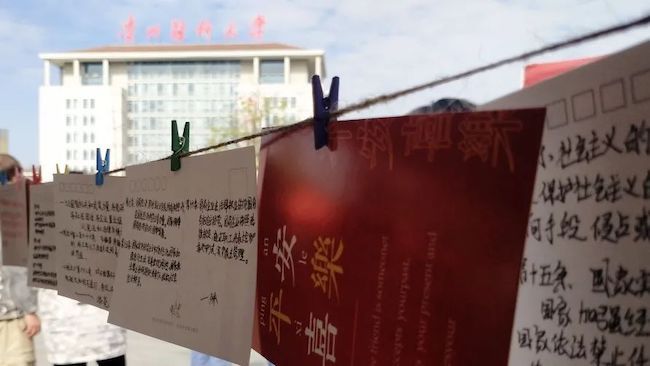 千年风华,披涛斩浪,宪法深重在人心。在“宪法风景线”游戏帐篷前,贵医学子怀着对宪法的敬畏之情写下自己对法律法规的理解,在轻松愉快地书写中培养贵医学子对法律的敬畏之心,让贵医学子学法而记法。