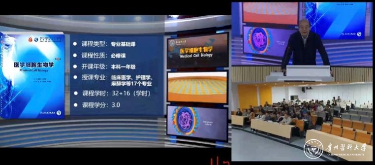 10月7日,77779193永利官网《学在贵医》省级教学“金师”示范课和国家级一流课程《医学细胞生物学》公开课第一讲在临床组团L307S智慧教室开讲,课程通过学习通教学平台进行同步直播。