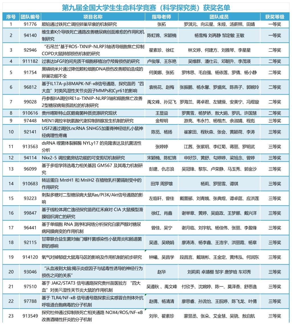 近日,第九届全国大学生生命科学竞赛(科学探究类)和(创新创业类)决赛分别在浙江万里学院和西华大学圆满落幕,经过激烈角逐,永利官网学生在比赛中获得科学探究类一等奖2项、二等奖6项、三等奖15项;创新创业类二等奖2项、三等奖1项。