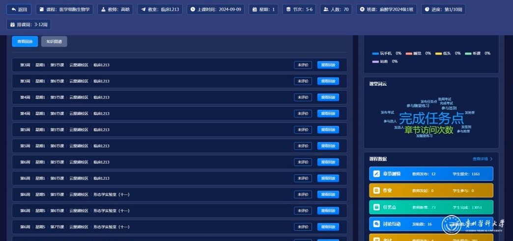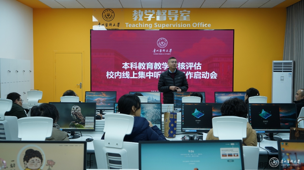 近日,永利官网在云漫湖校区教学督导室举行本科教育教学审核评估线上集中听评课启动会。教务处处长汪志勇、教务处副处长修江帆、教学督导委员会委员、优秀青年教师骨干、教学质量监控与评估办公室、现代教育技术中心等30余名人员,通过“贵医云”智慧教学督导平台开展线上集中听评课。
