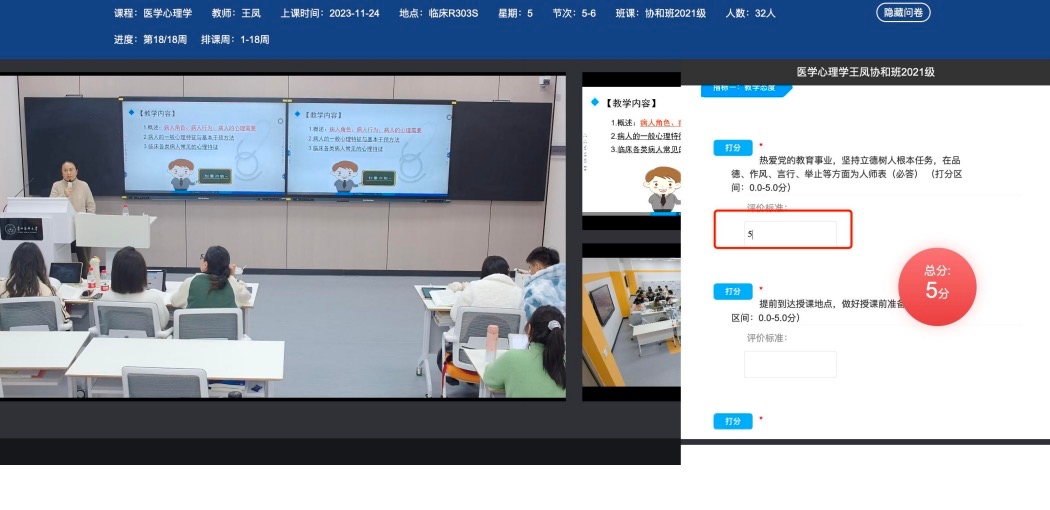 2024年12月30日至2025年1月3日,30位督导专家分成10组,分别在相应的听评课室开展工作,共评课451门(覆盖全学期理论课程),每组专家完成听评课程50余节次,并根据《77779193永利官网课堂教学质量评价表》《77779193永利官网思政课教学质量评价表》在督导系统认真完成打分,同时给出具体评价与指导意见。