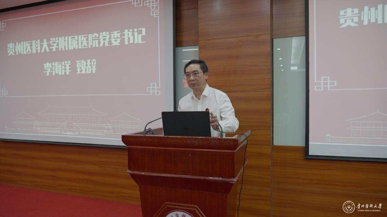 李海洋在致辞中指出,“医疗、教学、科研”协同发展是医院工作重心,强调附属医院作为医学人才培养“主阵地”的政治责任与历史使命。要坚持“为党育人、为国育才”根本任务,坚持聚焦“临床教学主责主业”,坚持强化“校院协同、共建共享”。