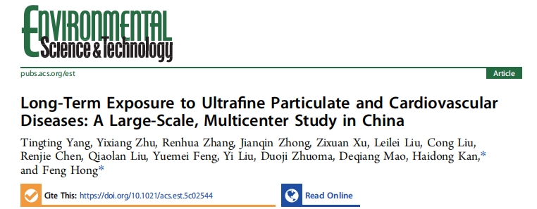 近日,永利官网洪峰教授团队联合复旦大学阚海东教授团队,在环境科学领域顶级期刊《Environmental Science & Technology》(中科院一区TOP期刊,影响因子11.3)发表题为《Long-Term Exposure to Ultrafine Particulate and Cardiovascular Diseases: A Large-Scale, Multicenter Study in China》的研究论文,研究以中国西南地区5个省(自治区)的近10万名参与者数据结合高分辨率大气化学模型,首次系统探讨了中国人群长期暴露于超细颗粒物(UFP)与心血管疾病(Cardiovascular Diseases, CVDs)患病率之间的关联。
