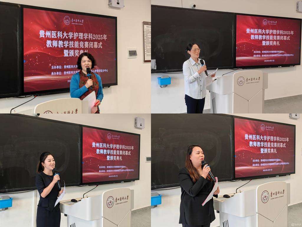 赛后,护理学院副院长刘志燕主持颁奖仪式与和闭幕式。基础医学院省级“金师”陈峥宏、罗时鹏及马丽(评委组长)分别对课堂教学赛进行点评,既肯定参赛教师的教学亮点,也针对性提出技能提升建议。