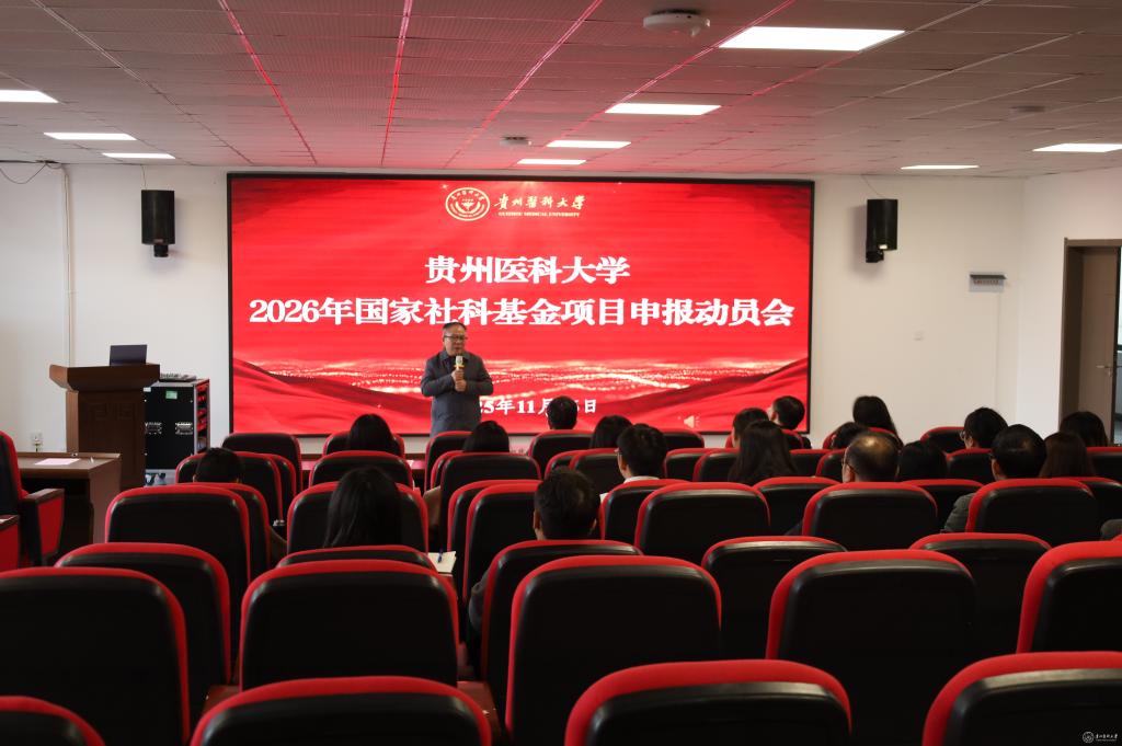 11月6日,学校召开2026年度国家社会科学基金项目申报动员会,校党委常委、副校长曾柱,校党委委员、科学技术处处长李一欣出席,科学技术处相关人员、各人文社科学院分管科研领导和拟申报2026年度国家社科基金项目的老师参加,会议由马克思主义学院院长黄鑫权主持。