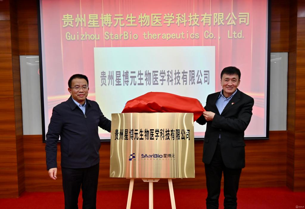 开讲前,曹义海教授出席了学校科技成果转化企业——贵州星博元生物医学科技有限公司的揭牌典礼,校党委常委、副校长禹文峰为典礼致辞,曹义海教授与禹文峰共同为公司揭牌。