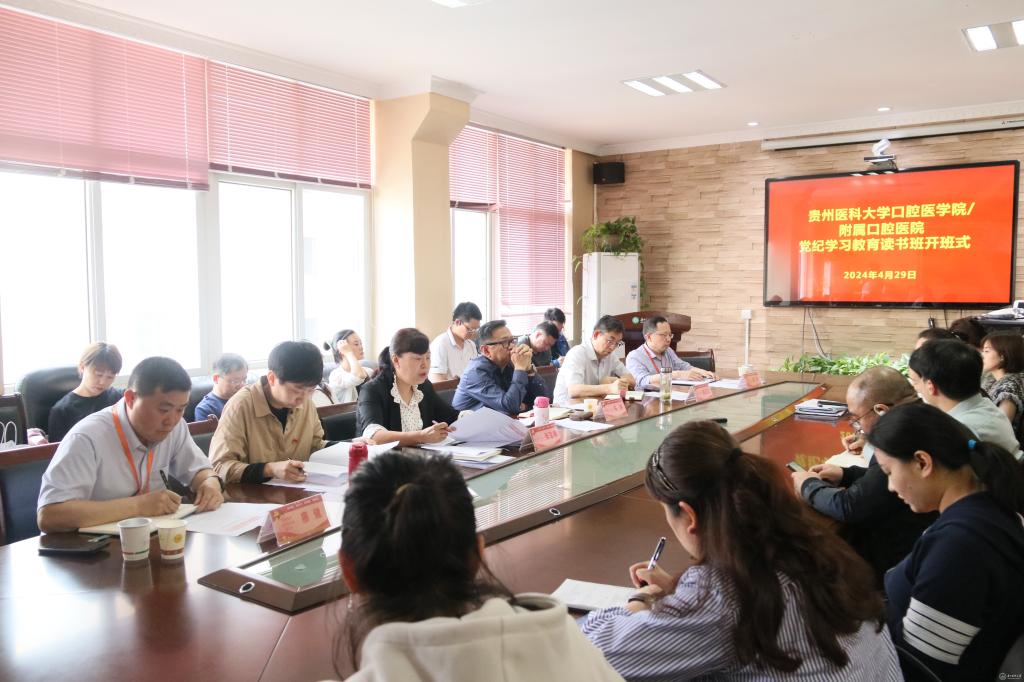 4月29日,口腔医(学)院在行政楼五楼会议室举行党纪学习教育读书班开班式,深入学习贯彻习近平总书记关于党纪学习教育的重要讲话和重要指示精神,认真学习《中国共产党纪律处分条例》,进一步部署党纪学习教育工作任务。党政领导班子成员,全院副科级以上干部,各党支部书记及支委,党纪学习教育领导小组全体成员参加。院党委书记张军梅主持。