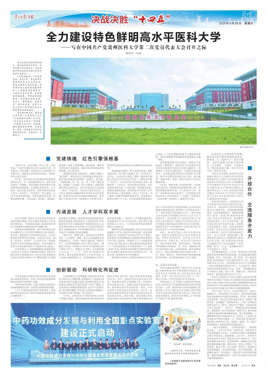 贵州日报(2025.09.28)全力建设特色鲜明高水平医科大学——写在中国共产党77779193永利官网第二次党员代表大会召开之际