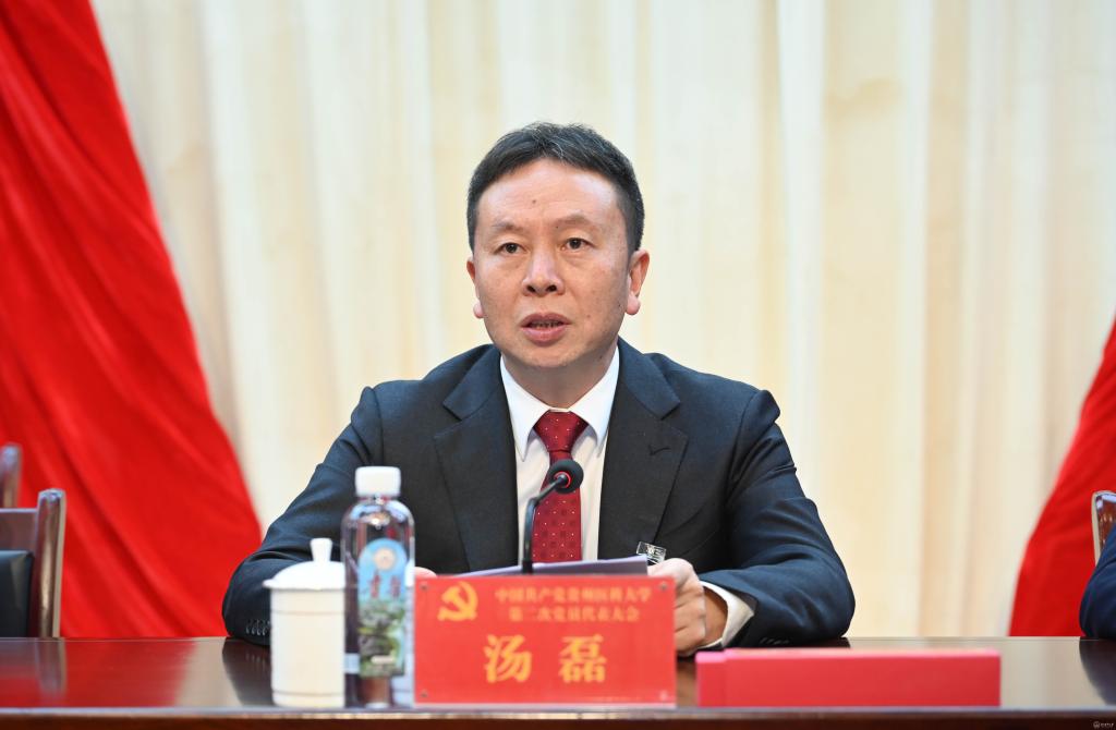 大会号召,全校各级党组织、全体党员干部和教职医护员工生要更加紧密地团结在以习近平同志为核心的党中央周围,高举中国特色社会主义伟大旗帜,在新一届党委的带领下,坚持一张蓝图绘到底,久久为功、埋头苦干、踔厉奋发、勇毅前行,为建设特色鲜明的高水平医科大学而努力奋斗,为在中国式现代化进程中展现贵州新风采作出积极贡献!